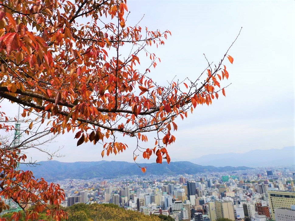 観光名所・松山城は加藤嘉明によって築城され、江戸時代までに作られた現存12天守の1つであり、日本100名城にも選出されたお城です。松山城の本丸広場では11月中旬から下旬にかけて、桜や楓の葉が赤く色付き見頃をむかえます。